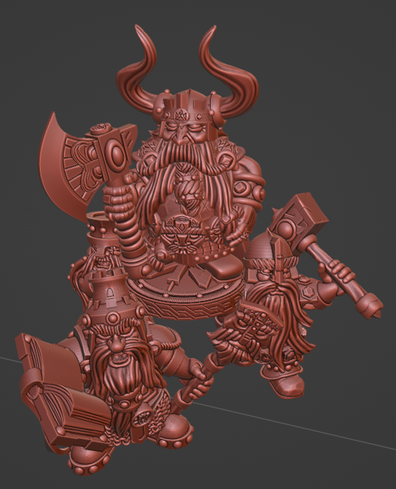 This set contains 4 bespoke Dwarf miniatures in three STL files. The King, his bearers as one model and his Herald and come fully supported for 3D printing.